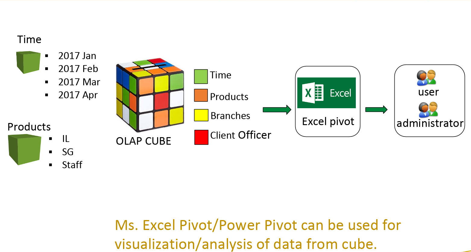 It’s like a cube box that user can slice, dice, drill up and down through measures and dimensions.