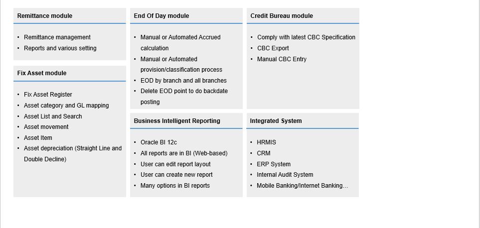 - Robust Core Banking System (More than 60 institutions, More than 15 Years and developed by experienced professionals)